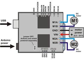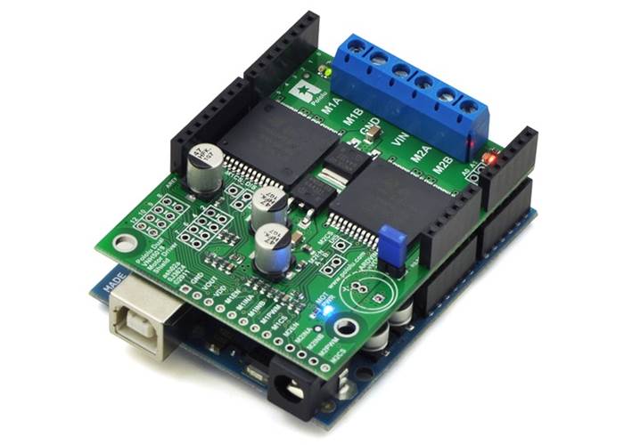 For high-power motor driver shields that operate to higher voltages and can deliver more current, see the newer Dual G2 High-Power Motor Driver Shields.