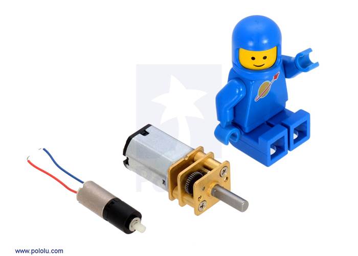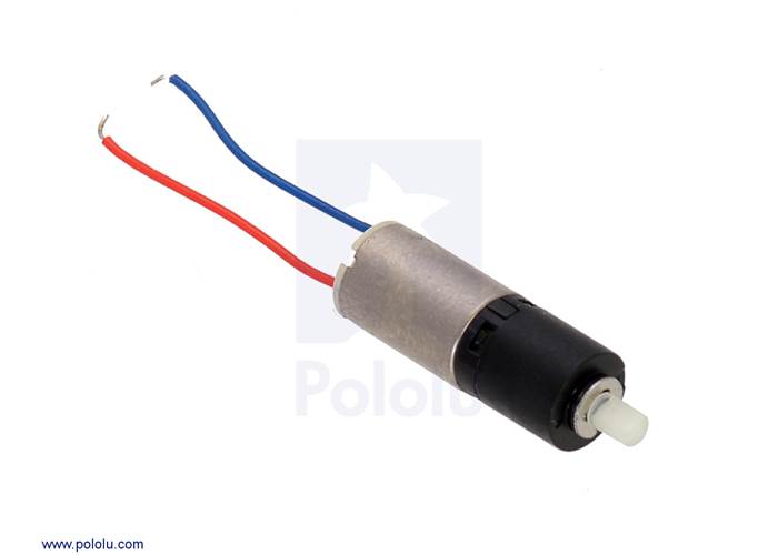 These tiny brushed DC gearmotors have a diameter of just 6 mm and weigh just over a gram, which makes them great actuators for miniature robots and very small mechanisms. They consist of a coreless motor fastened to a planetary gearbox by a small clip. The gears are made from liquid crystal polymers (LCPs), and gearbox’s nylon output shaft is compatible with our 14 mm wheels. Several gear ratios are available: