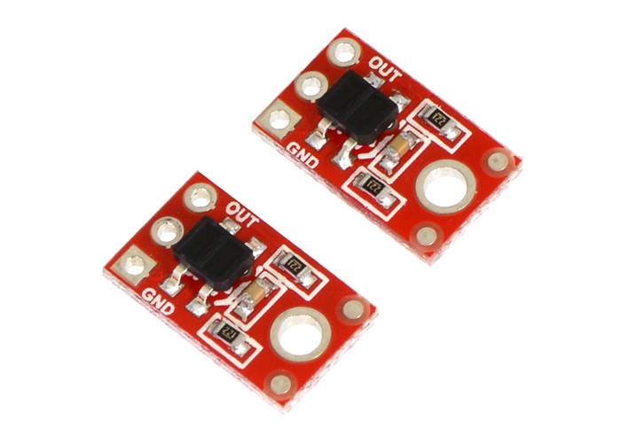 This module has a single mounting hole intended for a #2 screw (not included); if this mounting hole is not needed, this portion of the PCB can be ground off to make the unit even smaller. Each pack of two reflectance sensors includes sets of straight male header strips and right-angle male header strips, which allow you to mount them in the orientation of your choice (note: the header pins might ship as 1×6 strips that you can break into two 1×3 pieces). You can also solder wires, such as ribbon cable, directly to the pads for the most compact installation.