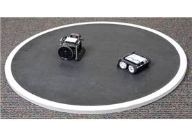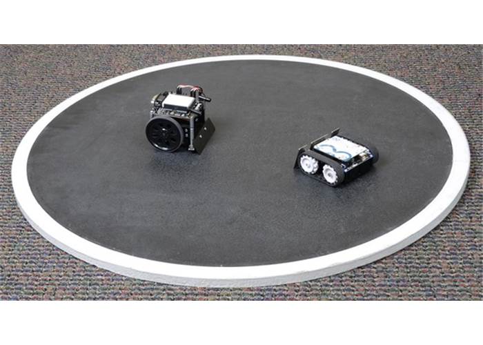 A Zumo robot preparing to attack a Parallax SumoBot. |