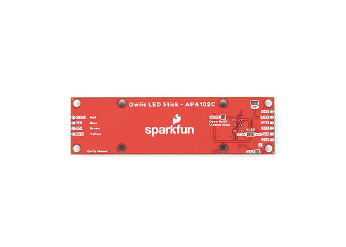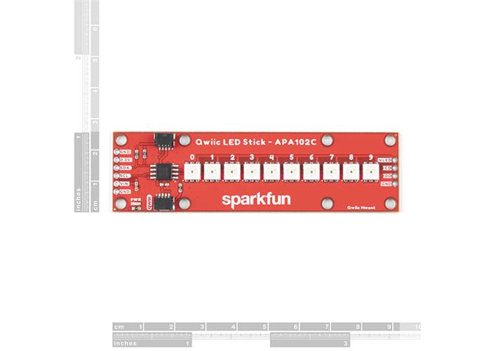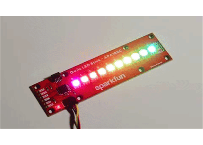 The SparkFun Qwiic LED Stick features ten addressable APA102 LEDs, making it easy to add full colour LED control using I 2 C. Write to individual LEDs to display a count in binary, or write to the whole strip for cool lighting effects. You can even add more LEDs to the end if you need to.