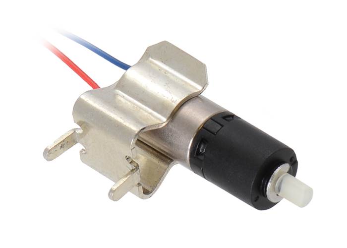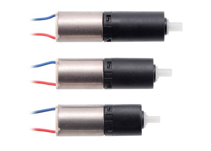 These tiny brushed DC gearmotors have a diameter of just 6 mm and weigh just over a gram, which makes them great actuators for miniature robots and very small mechanisms. They consist of a coreless motor fastened to a planetary gearbox by a small clip. The gears are made from liquid crystal polymers (LCPs), and gearbox’s nylon output shaft is compatible with our 14 mm wheels. Several gear ratios are available: