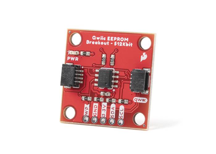 The SparkFun Qwiic EEPROM Breakout is a simple and cost effective option to add some extra storage space to any project. With 512 kilo-bits (or 64 kilo-bytes) of storage, this product is great for any microcontroller that doesn't have any EEPROM storage space, like the SAMD21.