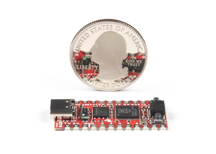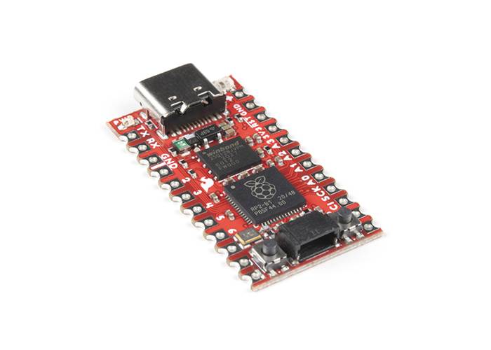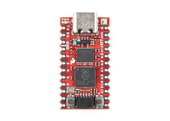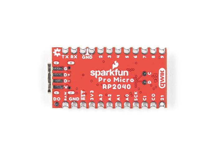 The SparkFun Pro Micro RP2040 is a low-cost, high performance board with flexible digital interfaces featuring the Raspberry Pi Foundation's RP2040 microcontroller. Besides the good 'ol Pro Micro footprint, the board also includes a WS2812B addressable LED, boot button, reset button, Qwiic connector, USB-C, resettable PTC fuse, and castellated pads.