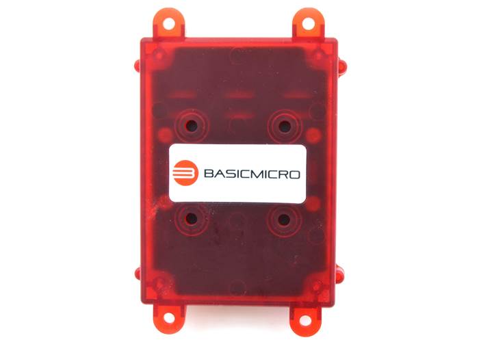 This translucent red plastic case with integrated fan is intended for use with 2x15A , 2x30A , 2x45A , and ST. 2x45A RoboClaws. The case serves to protect the RoboClaw while the fan adds cooling, allowing the motor controller to deliver higher continuous currents and sustain peak currents longer.