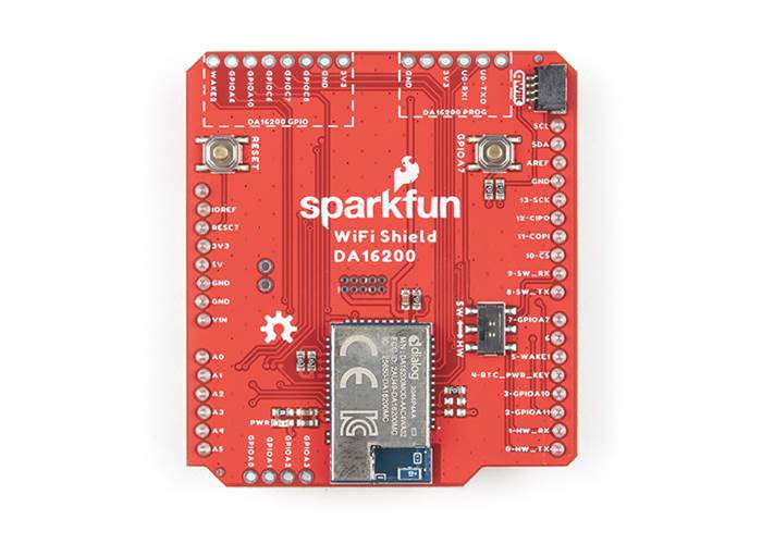 Ultra. Low. Power. Arguably the best three words in the IoT world. SparkFun has teamed up with ARM and Dialogue to provide you with this Qwiic WiFi Shield based around the DA16200 module. The DA16200 is a fully integrated WiFi module with a 40MHz crystal oscillator, 32.768KHz RTC clock, RF Lumped RF filter, 4MB flash memory, and an on-board chip antenna. With the addition of a Qwiic connector, multiple GPIO options, JTAG connectors for deep dive programming, and you've got everything you need to get your R3 layout device ready to set up your next IoT project.