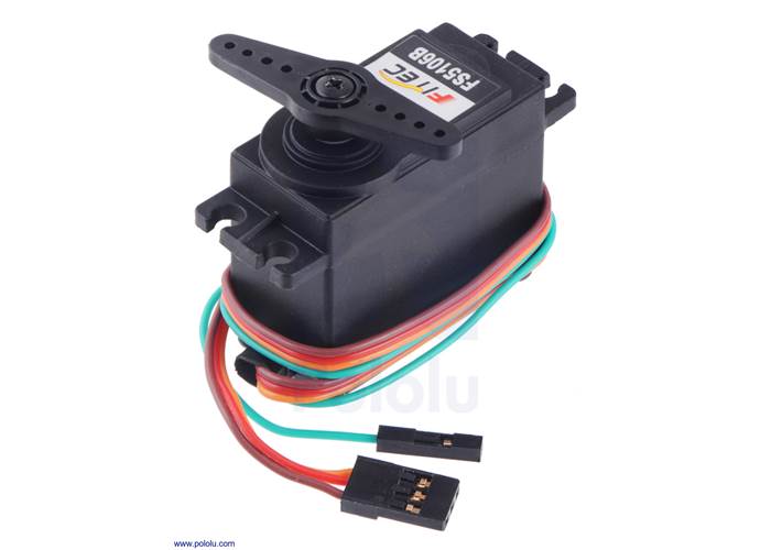 This version of the FS5106B standard servo from FEETECH is specially modified to provide access to the feedback potentiometer through a fourth (green) wire, allowing you to directly measure the position of the output. This extra information enables more complex robotics applications, such as determining when the servo has reached its target, detecting when the output is blocked, or implementing your own higher-level closed-loop position control.