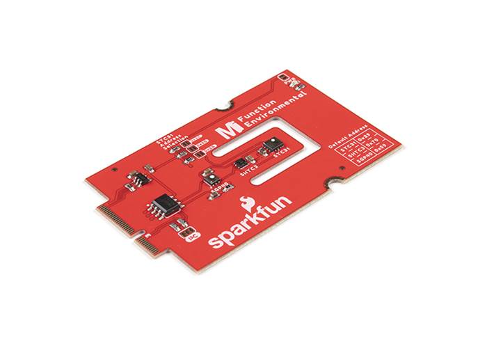 Utilising our handy M.2 MicroMod connector, no soldering is required to connect it to your system. Simply match up the key on your processor and function board's beveled edge connector to their respective key on the M.2 connector, then secure them to the main board with screws. The MicroMod Environmental Function Board can then be read via the I2C port. The board is equipped with the AP2112 3.3V voltage regulator, I2C pull-up resistors, power LED, jumper to disable the LED, and jumpers for alternative STC31 addresses.