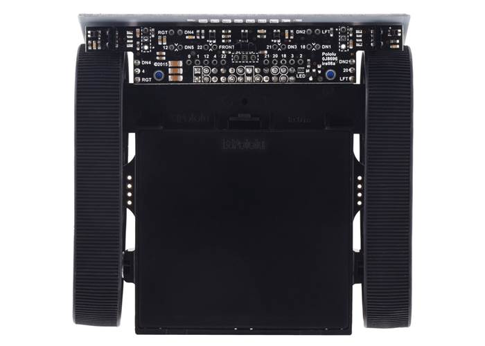This model uses simplified models of the control electronics to reduce the file size. More detailed models are available separately of the Zumo 32U4 OLED main board (24MB step) and Zumo 32U4 front sensor array (4MB step).