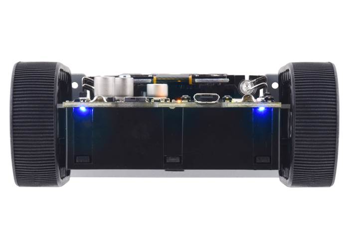 At the heart of the Zumo 32U4 is an ATmega32U4 AVR microcontroller from Microchip (formerly Atmel), and like our A-Star 32U4 programmable controllers, the Zumo 32U4 features a USB interface and ships preloaded with an Arduino-compatible bootloader. A software add-on is available that makes it easy to program the robot from the Arduino environment, and we have Arduino libraries and example sketches to help get you started. A USB A to Micro-B cable (not included) is required for programming. For advanced users who want to customize or enhance their robots with additional peripherals, the robot’s power rails and microcontroller’s I/O lines can be accessed via 0.1″-spaced through-holes along the sides and front of the main board.