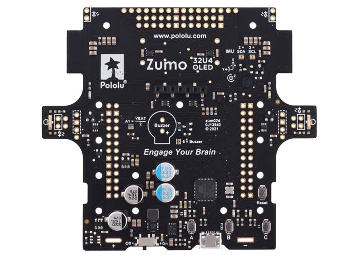Note: this model includes an Graphical OLED Display that is sold separately from the Zumo 32U4 OLED Main Board.