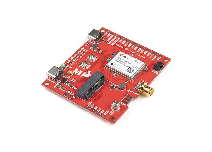 The SparkFun MicroMod GNSS Carrier Board raises the bar for high-precision GPS and is in a line of powerful RTK boards featuring the ZED-F9P module from u-blox. The ZED-F9P is a top-of-the-line module for high accuracy GNSS and GPS location solutions including RTK that is capable of 10mm, three-dimensional accuracy. With this board, you will be able to know where your (or any object's) X, Y, and Z location is within roughly the width of your fingernail! The ZED-F9P is unique in that it is capable of both rover and base station operations. Utilising the M.2 and Qwiic connectors, no soldering is required to connect it to the rest of your system. However, we still broke out 0.1"-spaced pins in case you prefer to use a breadboard to attach additional peripherals.