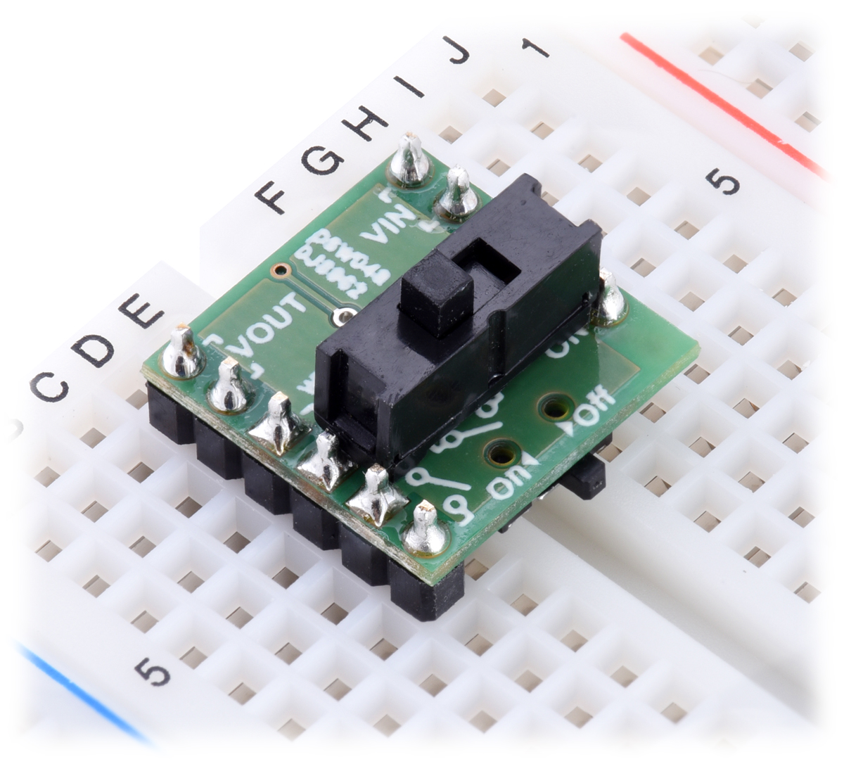 This breadboard-compatible module is an alternative to bulky power switches. It uses a small integrated slide switch to control a high-side power MOSFET that can deliver continuous currents up to around 4 A at 4.5 V to 40 V .