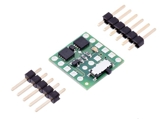 This breadboard-compatible module is an alternative to bulky power switches. It uses a small integrated slide switch to control a high-side power MOSFET that can deliver continuous currents up to around 4 A at 4.5 V to 40 V. The board features reverse-voltage protection and also makes it easy to control the MOSFET with an external switch or the digital output of a microcontroller.