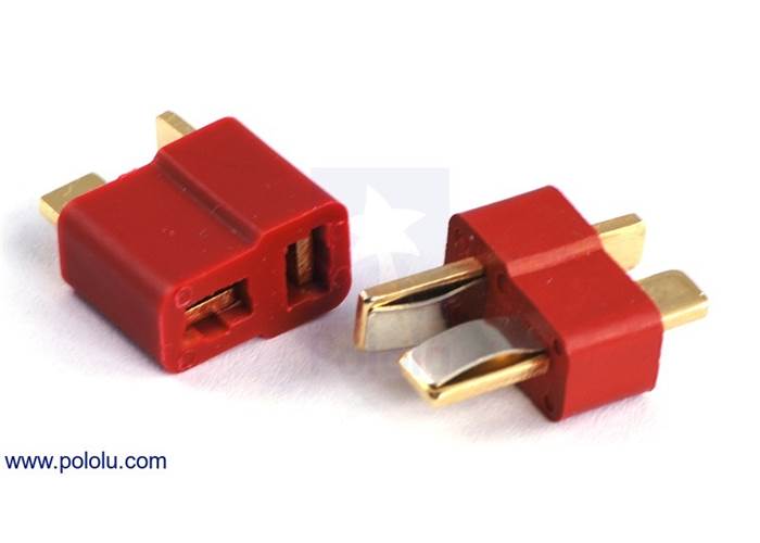 These are generic connectors similar to the popular Deans Ultra Plug connectors. They are sold as matching male-female pairs and have a current rating of 50 A. They are the smallest high-current connectors we know of, and they are great for projects that involve bigger motors and controllers, such as our Simple Motor Controllers and high-power motor drivers.