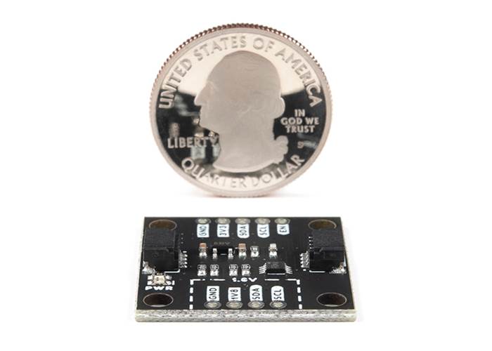 Our Qwiic Connect System is designed to help you quickly interface development boards and breakouts in your project or prototype. One way the Qwiic system achieves this is by standardizing on a single bus voltage of 3.3 Volts. This means that any Qwiic-compatible board that's based on a 1.8V part has an on-board voltage regulator and logic level translator, but what if you have a 1.8V part with no breakout board and you need to get integrated into your Qwiic project? No worries! This Qwiic 1.8V Adaptor supplies 1.8V at up to 300mA as well as bi-directional logic level translation so that you can connect your Qwiic system to any 1.8V I²C part you can find! Simply connect the adaptor to your bus using a Qwiic cable, connect your 1.8V part to the header pins marked "1.8V," and now your part is on the 3.3V Qwiic bus! As on other Qwiic boards, we've also broken out the 3.3V pins to a 0.1" header and added two Qwiic connectors, making it easy to connect in line with all of your other Qwiic boards.