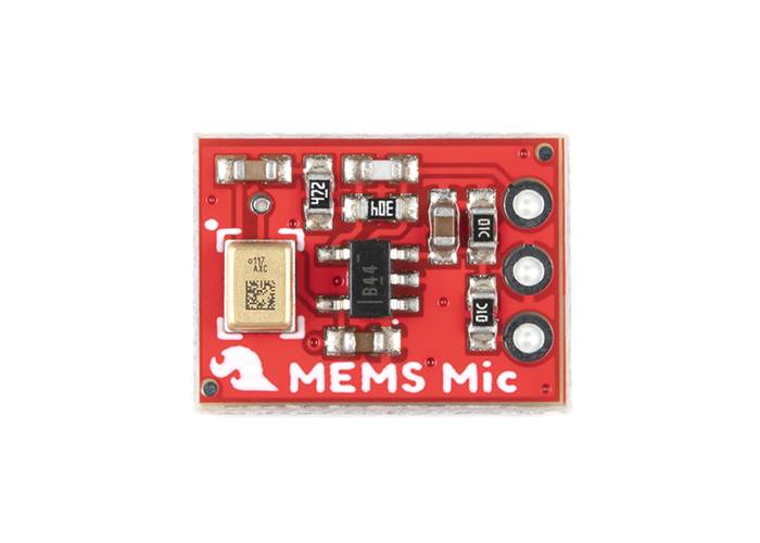 The SparkFun Analogue MEMS Microphone Breakout makes it easy to work with the SPH8878LR5H-1 analogue microphone from Knowles. This board features an OpAmp to bring the output of the microphone to a usable level, allowing you to plug directly into an ADC on a microcontroller or something like the SparkFun Spectrum Shield.