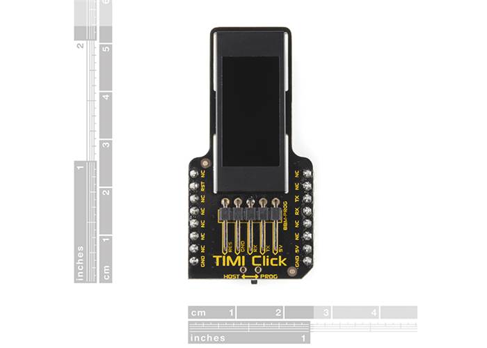 TIMI-Click is a unique breadboard compatible display development module designed to provide development boards/modules which have a mikroBUS™ Click socket a simple to interface display solution.