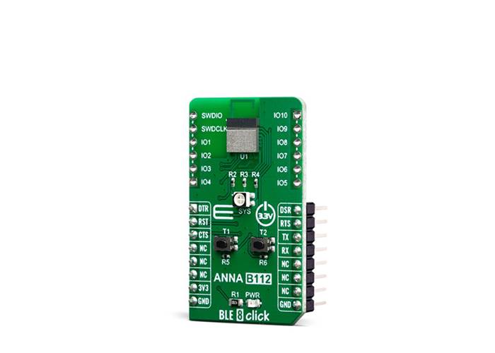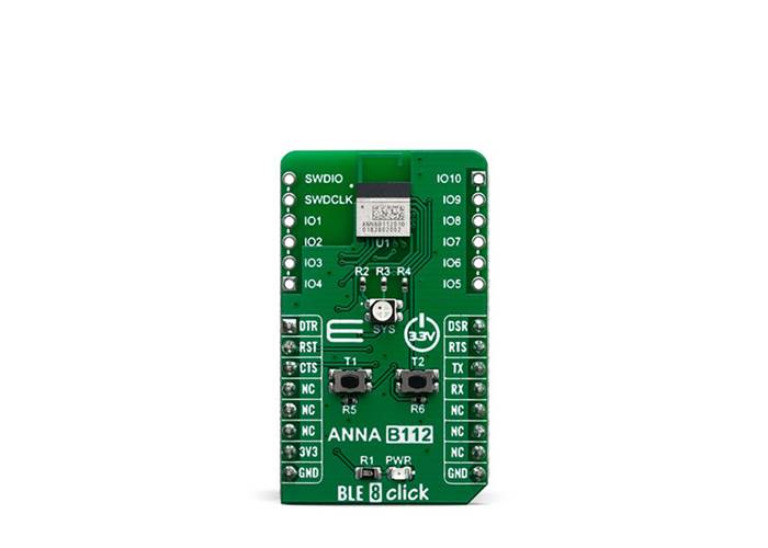 BLE 8 Click is fully embedded stand-alone Bluetooth 5.0 Energy connectivity module, equipped with the ANNA-B112, an ultra-small, high-performing, standalone Bluetooth low energy module for easy integration of Bluetooth low energy connectivity (BLE) into various electronic devices.