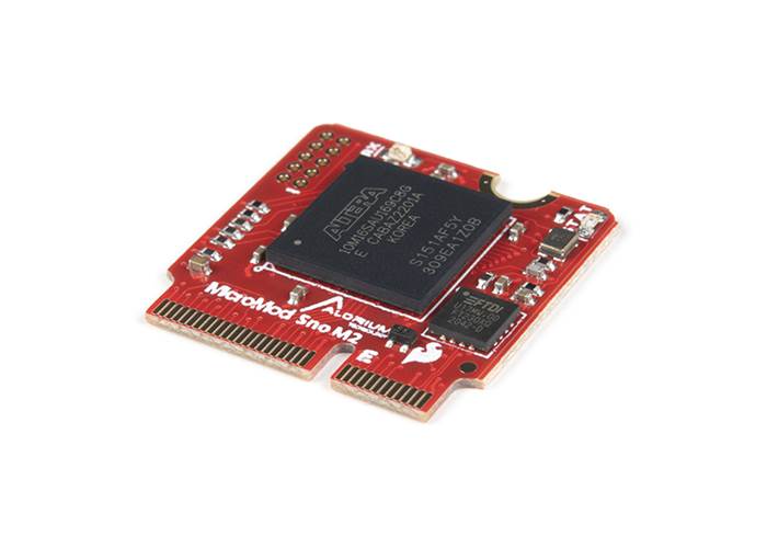 The SparkFun MicroMod Alorium Sno M2 Processor features the Snō System on Module (SoM) adapted to the MicroMod M.2 processor form factor. Snō's FPGA provides a reconfigurable hardware platform that hosts an 8-bit AVR instruction set, compatible with the ATmega328, making Snō fully compatible with the Arduino IDE. Snō SoM has a compact footprint, making it ideal for space-constrained applications and an obvious addition to our MicroMod form factor for prototyping.