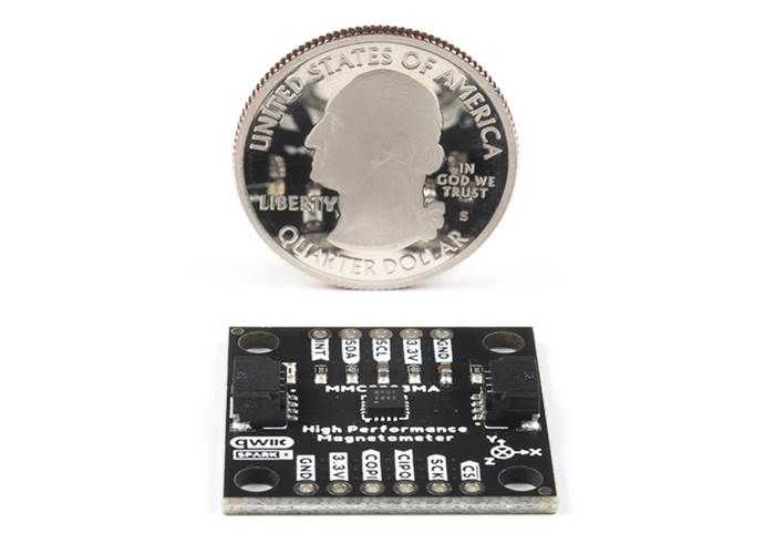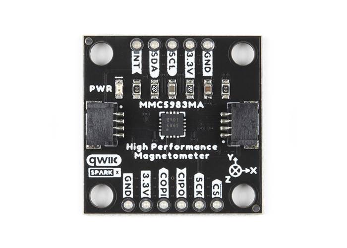 The MMC5983MA is a highly sensitive triple axis magnetometer by MEMSIC. It is capable of sensing down to 0.4mG enabling a heading accuracy of ±0.5°. Output rates of 1000Hz, ±8G FSR, and 18-bit resolution make the MMC5983MA a phenomenal magnetic sensor for electronic compass applications.