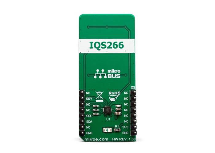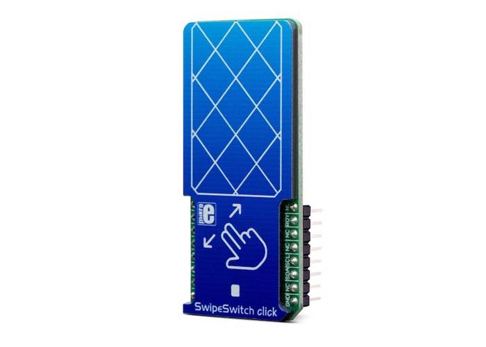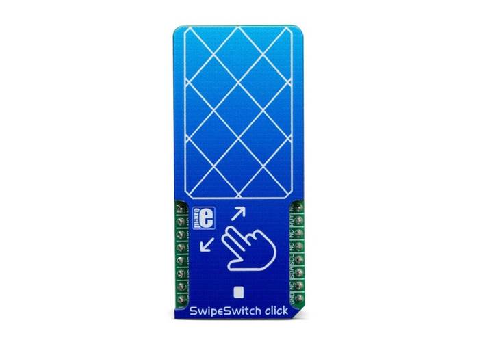 SwipeSwitch Click is capacitive touch, gesture, and proximity sensing Click board™, which is equipped with the IQS266, an integrated trackpad controller circuit which features ProxSense® and IQ Switch® technologies.