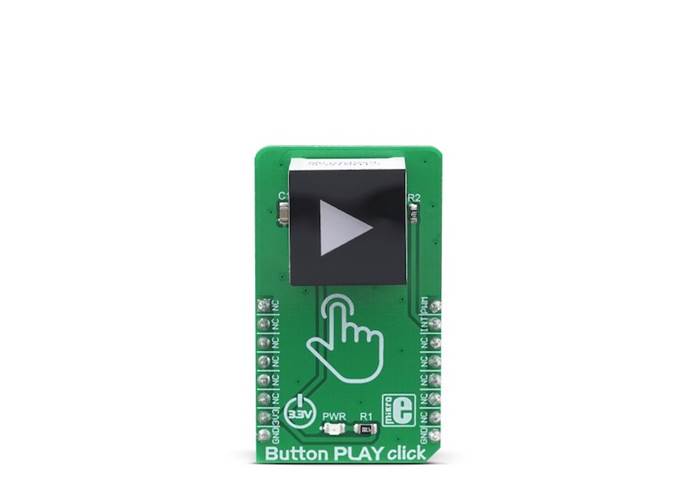 Button PLAY Click is a very interesting interactive gadget on a Click board™. It is an integrated capacitive touch sensor display in the form of a button.