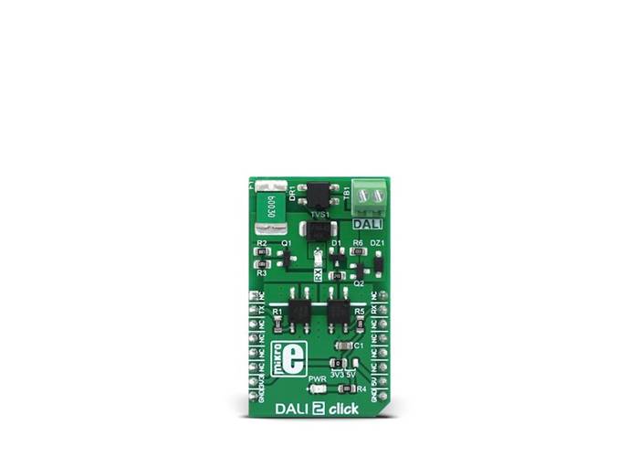 The simplest DALI network consists of a controller and one or more peripheral devices, such as LED drivers, dimmers, and ballasts, equipped with DALI interfaces. DALI 2 Click can be used to develop applications for controlling other peripheral nodes of the DALI network or to develop peripheral node applications that would respond to the commands sent by the main control unit. DALI 2 Click offers a simple and reliable interface to DALI and DALI 2 communication bus, making it possible to dive into the world of intelligent lighting.