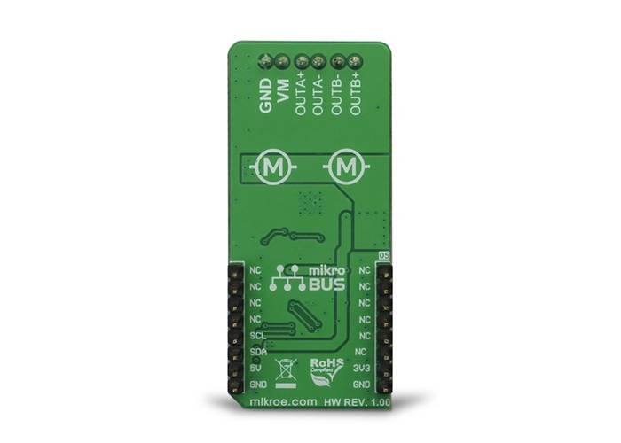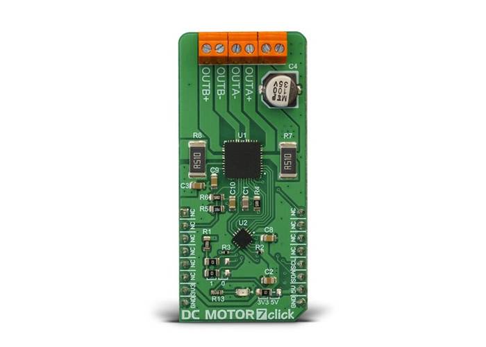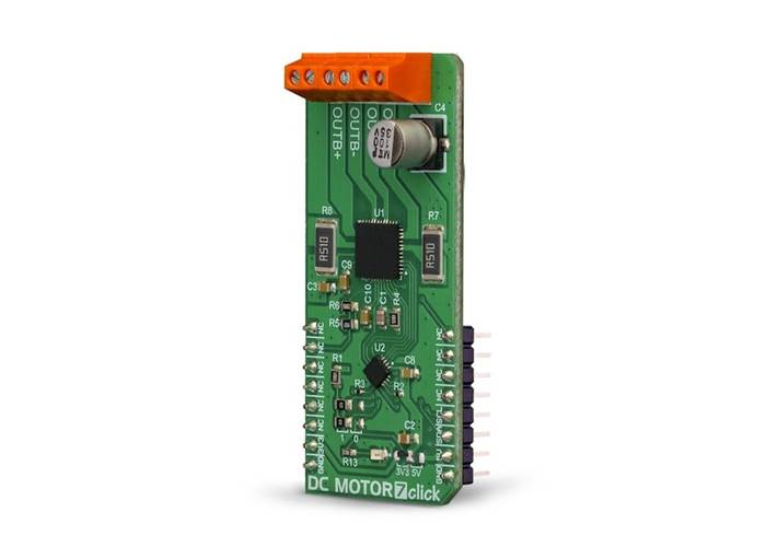 DC MOTOR 7 Click is a dual brushed DC motor driving Click board™, featuring the advanced PWM chopper-type integrated DC motor driver, labelled as TB67H400AFTG.