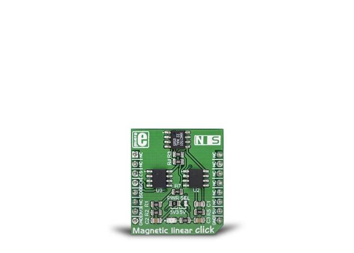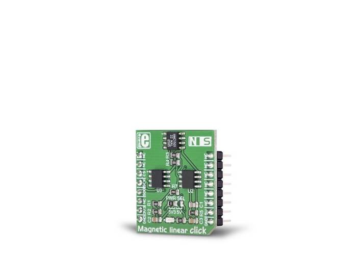 Magnetic Linear Click is a very accurate position sensing Click board™ which utilizes the HMC1501, a magnetic field displacement sensor IC. This integrated sensor uses a single saturated-mode Wheatstone bridge which consists of four magneto-resistive elements.