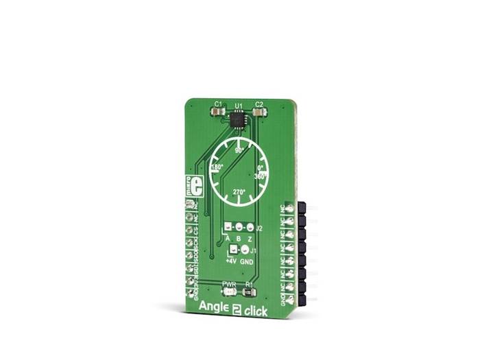 Angle 2 Click is a magnetic rotational sensor which relies on the ultra-fast MA700 angular sensor IC. Due to a high data output rate of 500kHz, the MA700 IC is able to provide a reliable absolute angular positional data at speeds up to 100,000 RPM.