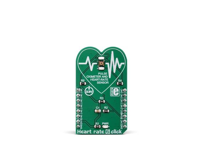 Heart Rate 6 Click is an optical biosensor Click board™ designed for heart-rate monitoring (HRM). This Click board™ employs a specialised sensor that incorporates two LED drivers and photo-sensing elements which are the most sensitive to green light.