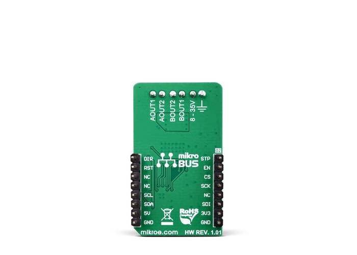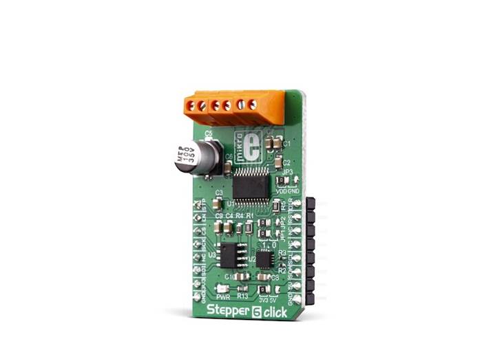Stepper 6 Click is the complete integrated bipolar step motor driver solution. It comes with the abundance of features that allow silent operation and optimal working conditions for the connected motor. A specialised integrated driver chip on this Click board™ far exceeds the capabilities of similar, commonly used step motor drivers. It comes in the package which also includes the mikroSDK™ software, and a library with all the functions. The Click board™ comes as a fully tested and approved prototype, making it a reliable device ready to use on the development board. Stepper 6 Click is a perfect solution for any application that requires an efficient and reliable motor driver. It can be used in 3D printers, laser printers, laser engravers, video security cameras, factory automatization, robotics, and other similar applications.