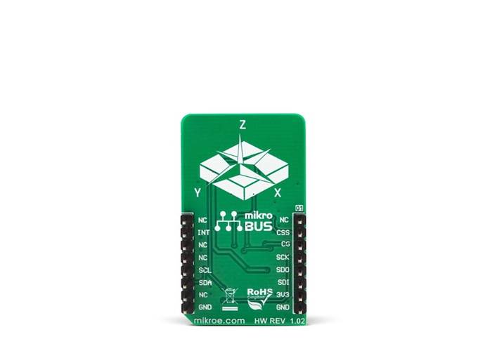 The IIS2MDCTR magnetic sensor also features a powerful programmable interrupt engine, which allows many event sources to be signalled via the interrupt pin (INT/DRDY), which is routed from the sensor to the mikroBUS™ INT pin. A very useful function of the interrupt engine is the signalling of the data ready event. That way, the host MCU does not have to poll the sensor for the data acquisition. The sensor can simply trigger an interrupt when the data is ready for reading. The interrupt engine allows some other customizations of the interrupt signal, such as the polarity, pulse/latch mode, and so on.