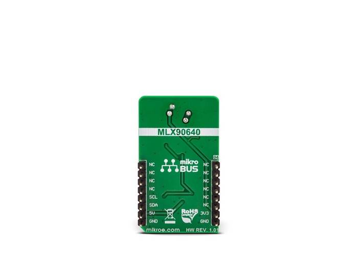 It should be noted that the sensor measures the IR emissivity of an object, so it is to be expected that some materials cannot be accurately measured by this sensor due to their low emissivity, such as the aluminium. To better understand the emissivity property of the materials, a person wearing clothes, can be taken as an example: the measured temperature will reflect the clothes temperature, rather than the body temperature itself, which is known to be about 37 ˚C Care should be taken not to expose the Click board™ to a cold or hot air flow, as it will cause false readings of the real temperature. This sensor requires the temperature across the sensor package to be constant.