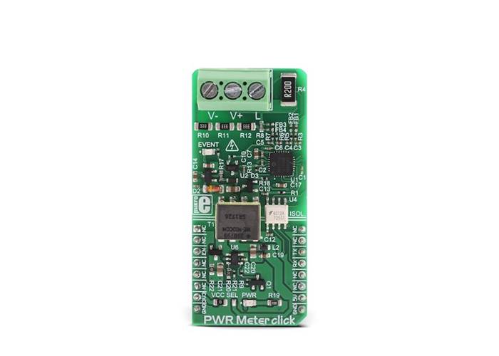 The measurement circuitry is completely isolated from the mikroBUS™, thus preventing any power surges from the measured circuit, which might cause damage to the low voltage components. Featuring very accurate power monitoring IC, with the accuracy of 0.1% across the 4000:1 dynamic range, this Click board™ is a perfect solution for various advanced measurement and monitoring purposes. Having in mind its processing core, and simplified command protocol over the UART interface, it can be driven even by slower, 8-bit MCUs, providing all the complex measurements which would have a large performance impact, otherwise. It can be used for the development of intelligent power distribution systems, real-time power characteristics measurement for AC or DC power supply units, power monitoring, and automation, or similar.