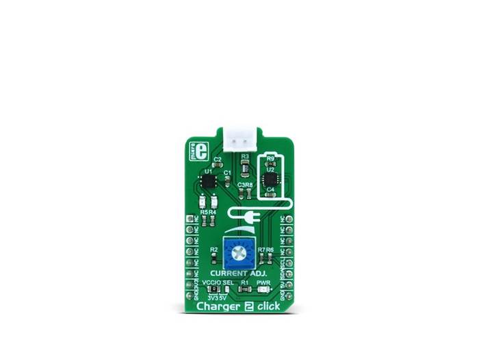 Charger 2 Click is a LiPo/Li-Ion battery charger with the additional monitoring IC onboard. This Click board™ as a whole, offers unpreceded battery charging and monitoring solution for 3.7V LiPo/Li-Ion batteries, with the capacity measurement/petrol gauge function, for up to 7000 mAh.