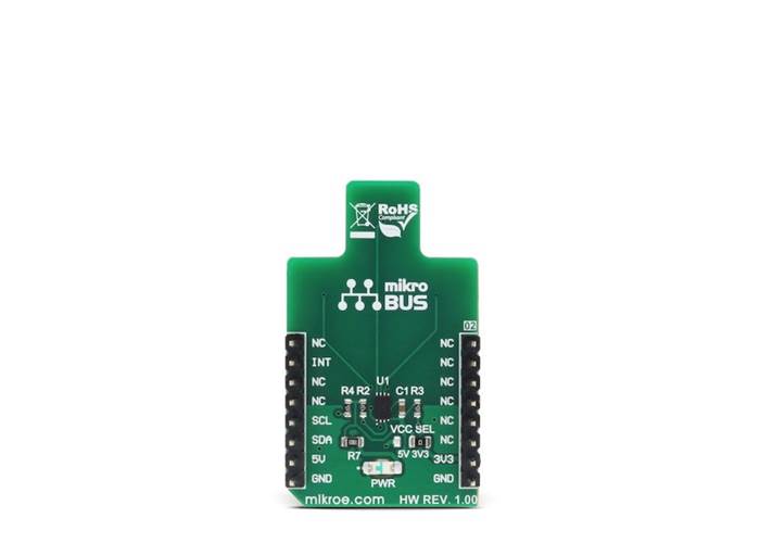 Any interrupt event will drive the #ALERT pin to a LOW logic state. This pin is routed to the mikroBUS™ INT pin and it is used to trigger an interrupt event on the host MCU.