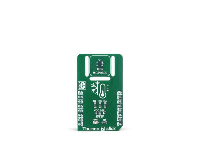 Thermo 7 Click is a Click board™ equipped with the sensor IC, which can digitise temperature measurements between -55°C and +125°C so that the temperature measurement data can be processed by the host MCU. Thermo 7 Click provides an accuracy of ±1°C in the range from -10°C to +85°C. The sensor used on this Click board™ has a great combination of features that make it a perfect choice for any temperature measurement application: low power consumption, selectable sampling resolution, programmable interrupt engine, compact sensor size, alert output pin, and more. The sensor itself requires almost no external components, which simplifies the design, reducing the cost and cutting the time to market.