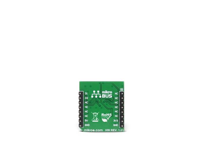 Signal encoding itself is done by the host MCU. Having two optical sensing channels, Opto Encoder Click has the ability of both speed and direction encoding. The most common usage is encoding of the step motor position: a cylinder with slits is physically mounted above the sensor so that the LED can illuminate the phototransistors only through these slits. By rotating this cylinder, the light beam will be blocked periodically. The single sensor output will be a pulse train, while the cylinder is rotating. Having two photo sensors physically distanced by a small amount, allows the pulse signal of the first sensor to be either delayed or expedited with respect to the pulse on the second sensor, depending on the rotational direction.