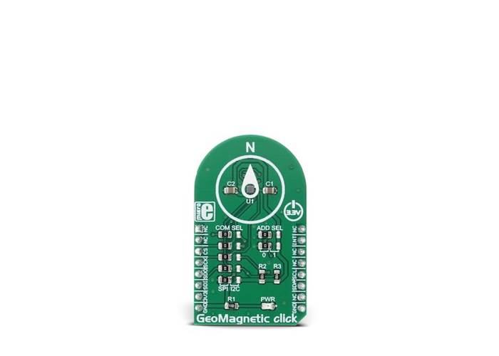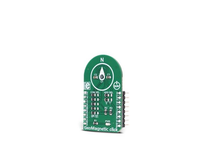 GeoMagnetic Click is a digital magnetometric Click board™ which can measure the geomagnetic field in three perpendicular axes.