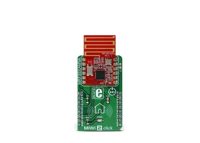 MiWi 2 Click features the MRF89XAM9A, a compact low-power sub-gigahertz radio transceiver module from Microchip, that operates at a frequency range between 902MHz and 928MHz. This module has all the necessary components onboard, including a small trace PCB antenna and matching electronics, allowing compact design, while maintaining the flexibility. It supports OOK and FSK signal modulation with data rates limited to 200kbps and 40kbps respectively, in order to be compliant with the ETSI standards. The MRF89XAM9A module is based upon a base architecture of the generic MRF89XA module, with a few modifications, applied in order to make this module FCC and IC standards compliant.