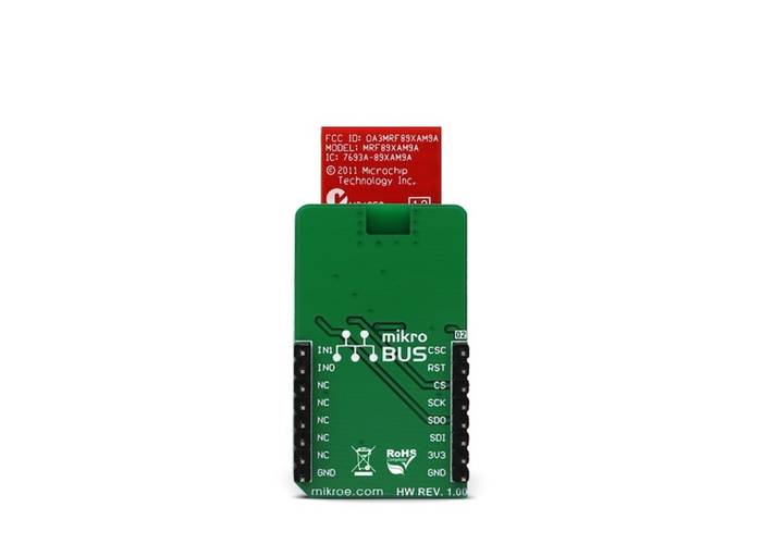 Note: This Click board™ complies with the United States (FCC Part 15.247 and 15.249) regulatory standards. For European (ETSI EN 300-220) regulatory standards compliant Click board™, please visit the product page of the MiWi Click.