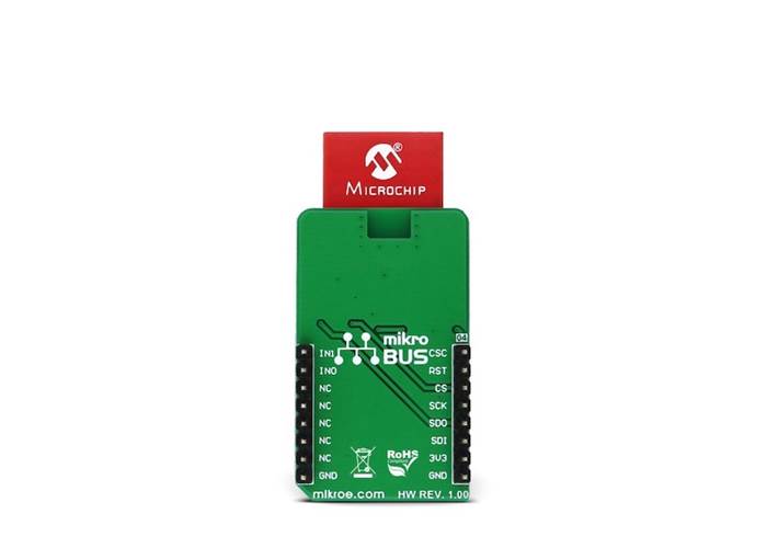 RESET line from the module is routed to the mikroBUS™ RST pin and it is used to reset the device. After the reset, the device is unavailable for about 5ms. To reset the device, this pin has to be pulled to a HIGH logic level for at least 100 µs. It is pulled to a LOW logic level by the pull-down resistor.