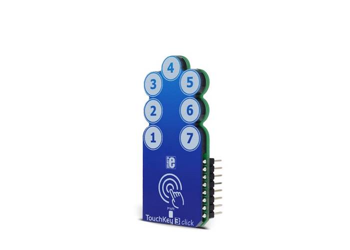 There are many kinds of touch sensors on the market, but every one of them has some unique features that make it stand out from the crowd. TouchKey 3 Click is equipped with seven advanced capacitive sensors, based on the proprietary QTouch® technology. Besides quite a large number of QTouch® capacitive sensor channels, TouchKey 3 Click also offers some additional features, such as the Adjacent Key Suppression (AKS®), a technology that ensures correct button press, even when the touch sensing pads are placed close to each other.