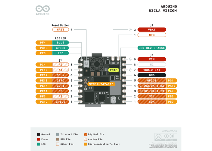 Nicla Vision combines a powerful STM32H747AII6 Dual ARM® Cortex® M7/M4 IC processor with a 2MP colour camera that supports TinyML, as well as a smart 6-axis motion sensor, integrated microphone and distance sensor.