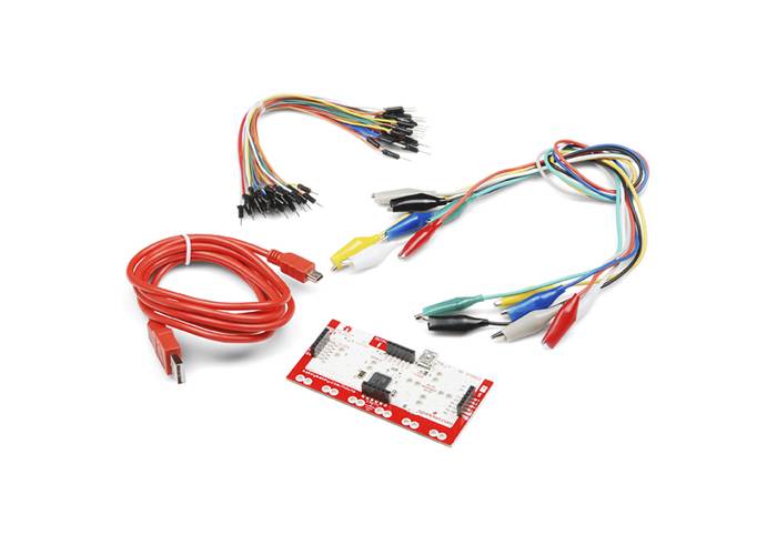 Makey Makey Standard kit is a new way to interface with a computer where you become the keyboard and mouse. You can use apples for keyboard buttons and a real cat as a mouse (be nice). Any game or program can now be controlled by anything around you. Mario cart with marsh mellows or mix dubstep with pot plants. Works with Windows, Mac, Linux.