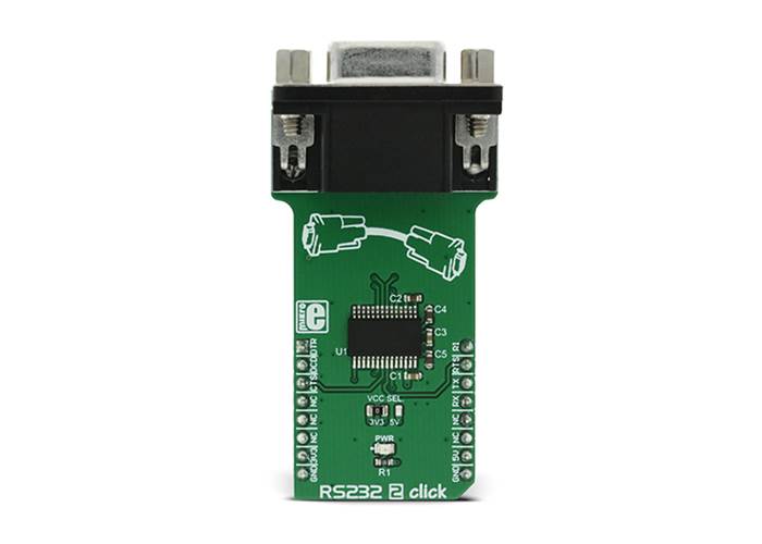 RS232 2 Click features the standardized DE-9 connector for easy connection to the RS232 device. By switching the VCC SEL jumper, it is possible to select the power supply voltage for the RS232 2 Click. Although it can work with 5V, the device will accept UART signals of 5V even while working in 3.3V mode.
