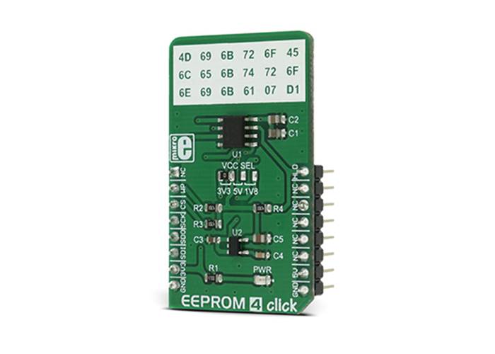 EEPROM 4 Click is aimed towards industrial and commercial applications, which require low voltage and low power operational capabilities. It can be used for any kind of temporary or permanent data storage for various embedded electronic devices, simple data logging, storing various working parameters of a module or device, safeguarding the sensitive data in case of a power cycle, and other similar applications where EEPROM memory is needed.