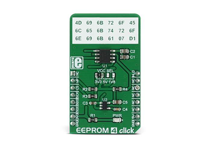 EEPROM 4 Click is 2,097,152 bits on a Click board™, organised into 262,144 bytes. In other words, this Click board™ is an EEPROM memory medium with the capacity of 256 KB.